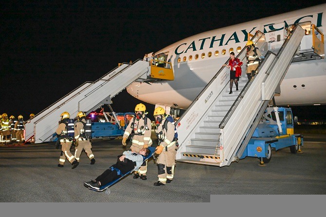 機管局圖片 是次演習有超過1000名來自逾20間機構及政府部門代表參與,國泰航空為參與演習的航空公司,並由志願工作人員扮演旅客及受影響旅客的家屬。 演習於凌晨2時開始,模擬一架載有120人的離港客機,在中跑道滑行時突然中止起飛,飛機刹停期間,其主起落架塌下,機身與跑道碰撞後右邊引擎起火。航空交通管制指揮塔人員立即啟動失事警報,香港機場管理局亦即時啟動機場緊急應變中心,以便不同部門及機構緊密協調及溝通。消防處及香港警務處等緊急應變部門,迅速抵達事故現場展開滅火及救援、醫療、傷者運送及其他支援行動。 演習亦模擬受傷旅客及機組人員獲救後被送往四間公立醫院;無受傷旅客則被送往機場的旅客接待中心,辦理入境及海關手續後,再送往為演習而在機場設立的親友接待中心。 機管局聯同民航意外調查機構、國泰航空、消防處及警務處舉行模擬聯合記者會,交代事故詳情及救援行動情況。逾20名來自本地6間大學的學生參與扮演記者到場採訪。演習於上午6時結束。 機管局機場運行執行總監姚兆聰表示,香港國際機場一向非常重視安全,今次演習為機管局及機場同業、參與的政府部門及機構提供寶貴機會,測試並熟習在三跑道運作下,於重新配置的中跑道處理飛機事故的緊急程序及應變準備。我們感謝各機場同業的積極參與,為三跑道全面運作做好準備。 香港國際機場每年舉行超過100次演習、練習及培訓講座,我們也為三跑道系統運作,額外增加50次演習,內容涵蓋不同運作事故及緊急應變場面,包括惡劣天氣、系統故障、設備失靈、公共衞生事故及保安事故等。(完) 【編輯:陳卓儀】