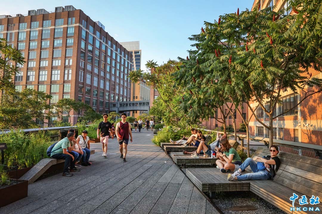 香港新聞網10月20日電 美國紐約曼哈頓寸土尺金,卻“擠”出一塊空中綠地,建造了一個橫跨三個街區的“⾼架公園”(High Line Park)。“⾼架公園”過去是曼哈頓下城西區一個廢棄的高架鐵路,當地居民不忍拆掉它,1980年集資將它改建成一座高架橋上長達2.33公里的綠色空中長廊,市民可以散步、休憇,也能俯瞰曼哈頓城市脈動,成為紐約自由行必訪景點。