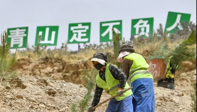 市民在翠意盎然的小道上行走(徐文峰 攝)