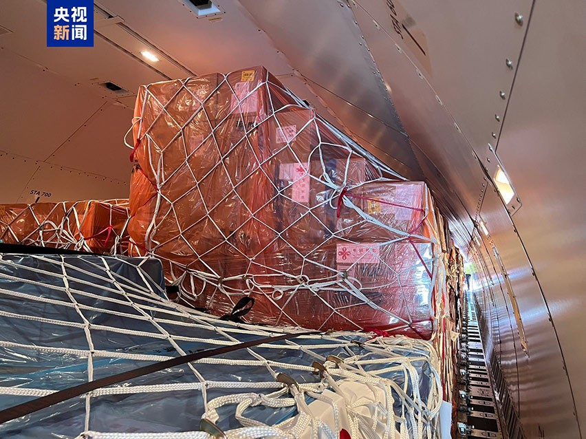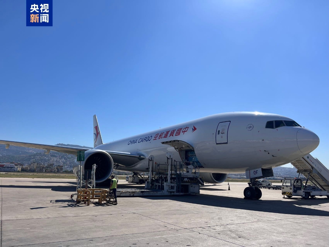10月21日,中國緊急援助物資飛抵黎巴嫩貝魯特。(圖源:央視新聞) 據悉,此批醫療物資共3601箱,包含麻醉劑、一次性使用氣管插管、手術衣、吸氧面罩等65項。