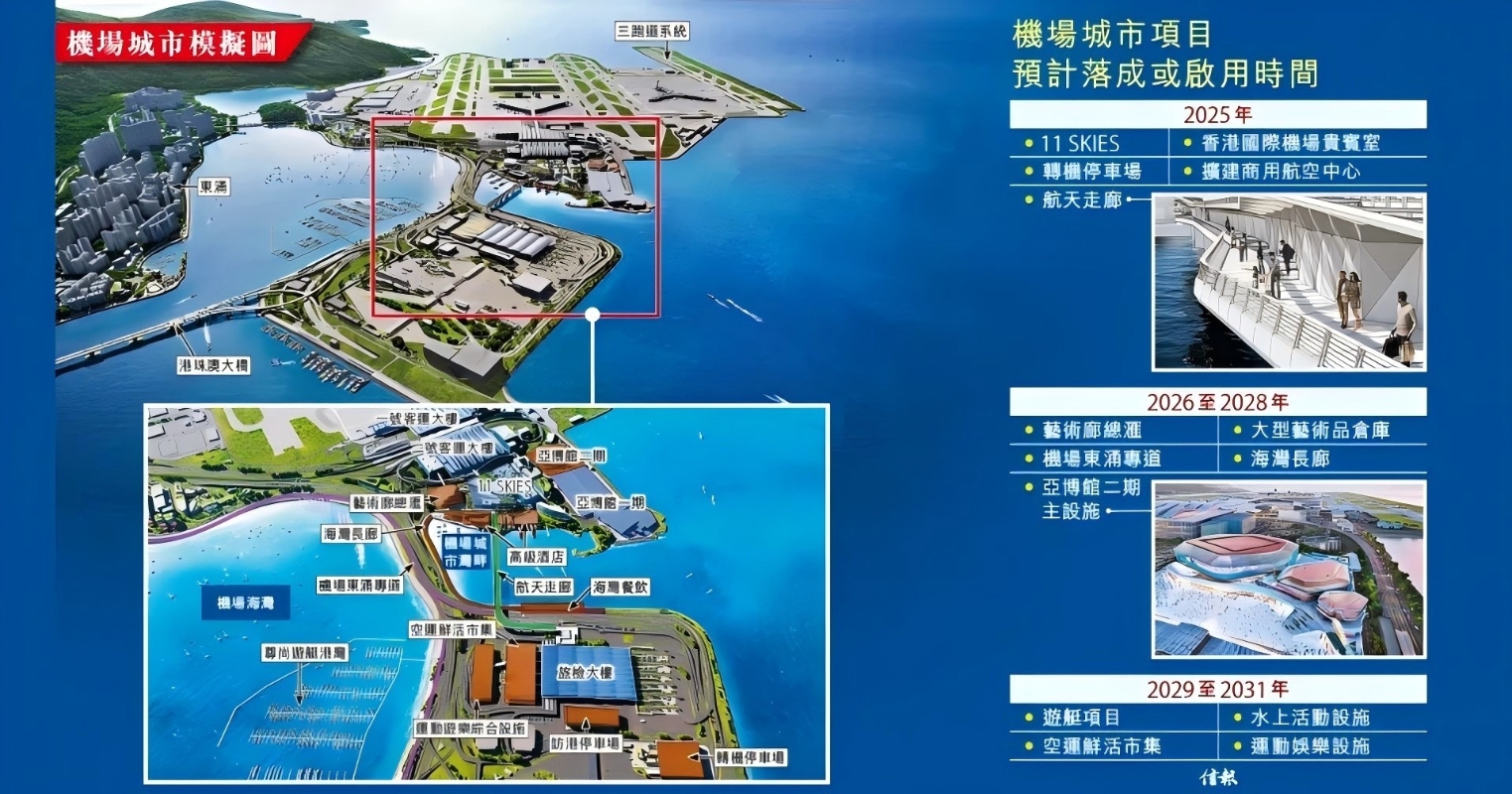 香港擴大“機場城市”建設藍圖 冀成“亞洲獨一無二新地標”香港新聞網10月25日電 香港新一份施政報告鞏固香港國際航空樞紐地位,當中包括“機場城市”規模超過一倍,打造世界領先新地標,帶動高端商業、旅遊和休閒活動。24日,香港機場管理局主席林天福向傳媒進一步講解具體規劃,新項目包括構建藝術產業生態圈和增設旅遊玩樂設施,還有港版築地“空運鮮活市場”,以吸引高端和年輕客群。整個“機場城市”發展預計投資逾千億元,其中機管局將承擔基建部分的300億元。 機管局在2019年提出機場城市發展藍圖,多個項目正在積極推進,其中11 SKIES將於2025年下半年陸續開幕,而擴建商用航空中心、香港國際機場貴賓室、連接機場島及香港口岸人工島的航天走廊和轉機停車場均將於明年內落成。 其後數年,新發展項目將聚焦構建藝術產業生態圈、興建亞洲博覽館第二期、設置遊艇港灣及配套設施、開設空運鮮活市集、增加公眾活動空間等,各項目預計在2026年至2031年落成。有關項目發展涉及額外60公頃土地及200公頃海域,相當於尖沙咀由海運大廈至瑰麗酒店海旁區域。