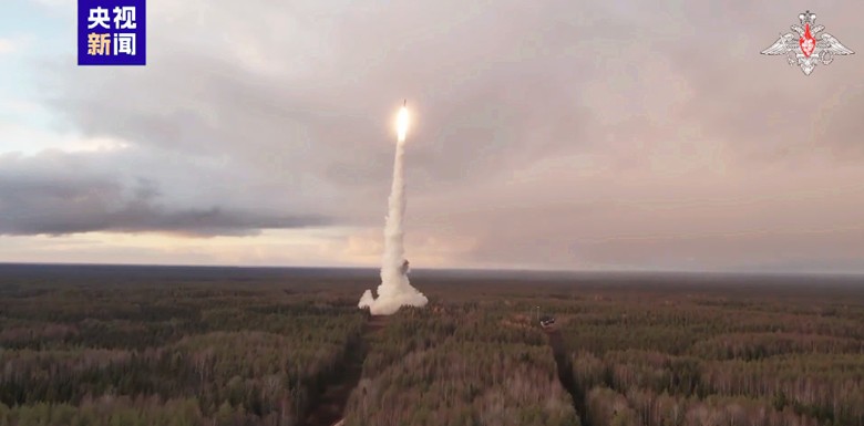 2024年10月29日俄羅斯發射3枚洲際彈道導彈。央視新聞報道截圖 俄羅斯國防部稱,當地時間10月29日,在俄羅斯總統普京的領導下,俄軍進行了戰略核力量演習。 演習期間,俄軍從普列謝茨克航天發射場向位於堪察加半島的庫拉靶場發射了“亞爾斯”洲際彈道導彈;位於巴倫支海的俄羅斯“新莫斯科斯克”號核潛艇和位於鄂霍次克海的俄羅斯“奧列格大公”號核潛艇發射了“青斑”和“布拉瓦”洲際彈道導彈。 值得注意的是,俄軍圖-95MS遠程戰略轟炸機也參與了演習,發射空射巡航導彈。