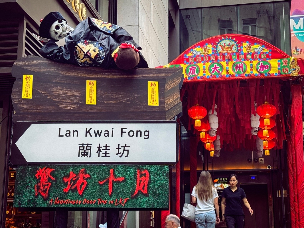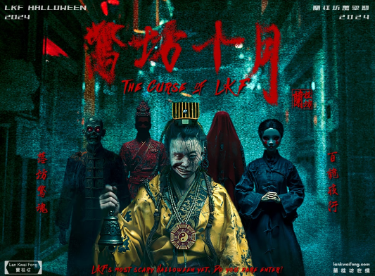 蘭桂坊的萬聖節極盡恐怖元素。(圖源:香港旅遊發展局) 中區警區助理指揮官(行動)戚夏瑜表示,預計今年萬聖節將會有約2.5萬人到蘭桂坊一帶慶祝,與去年相約。當日下午2時起,警方將分階段實施封路措施,除了蘭桂坊外,還包括德己立街、雲鹹街、威靈頓街、士丹利街及皇后大道中。