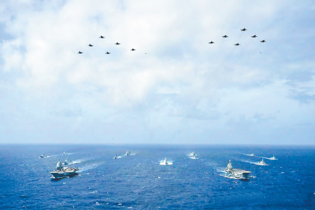 中國海軍遼寧艦、山東艦首次開展雙航母編隊演練。本文圖片均來自:人民海軍 10月31日,中國官方首次公佈了遼寧艦和山東艦雙航母編隊演練的圖片。有軍事專家看過圖片表示,雙航母編隊的戰鬥力不僅僅是1+1>2,是1+1遠遠大於2,兩艘航空母艦可以把更多優勢集中在一起,來對假想敵實施有效進攻。“因為兩艘航母擁有的艦載機所能形成的打擊合力不同於一艘。雙航母編隊的防空、反潛、對艦攻擊能力都完全不一樣,極大提高航母編隊的戰鬥能力。”