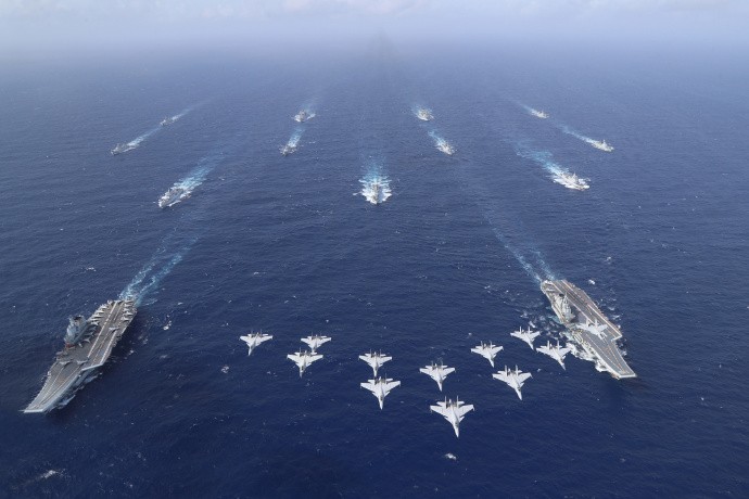中國海軍重磅發佈雙航母編隊訓練照分享到:
