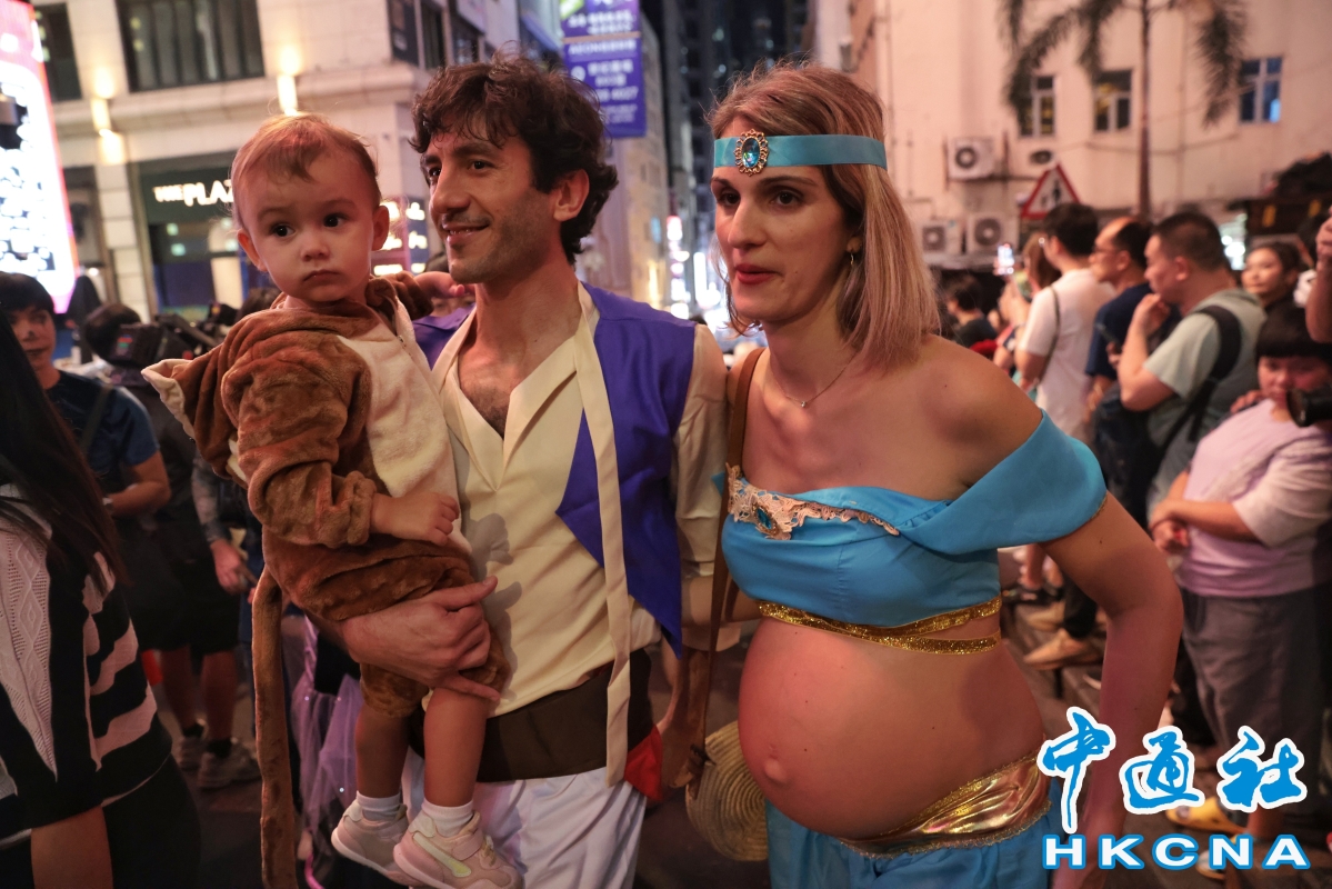 香港新聞網11月1日電(記者 譚暢)10月31日晚上,香港中環蘭桂坊短短的斜坡小路上,擠滿過萬聖夜的人群。金角大王、熊貓、南瓜、財神爺、小天使……各類搞怪扮相層出不窮,沿途兩邊的酒吧未入夜已滿座,有酒吧業者預計比去年多三成營業額。