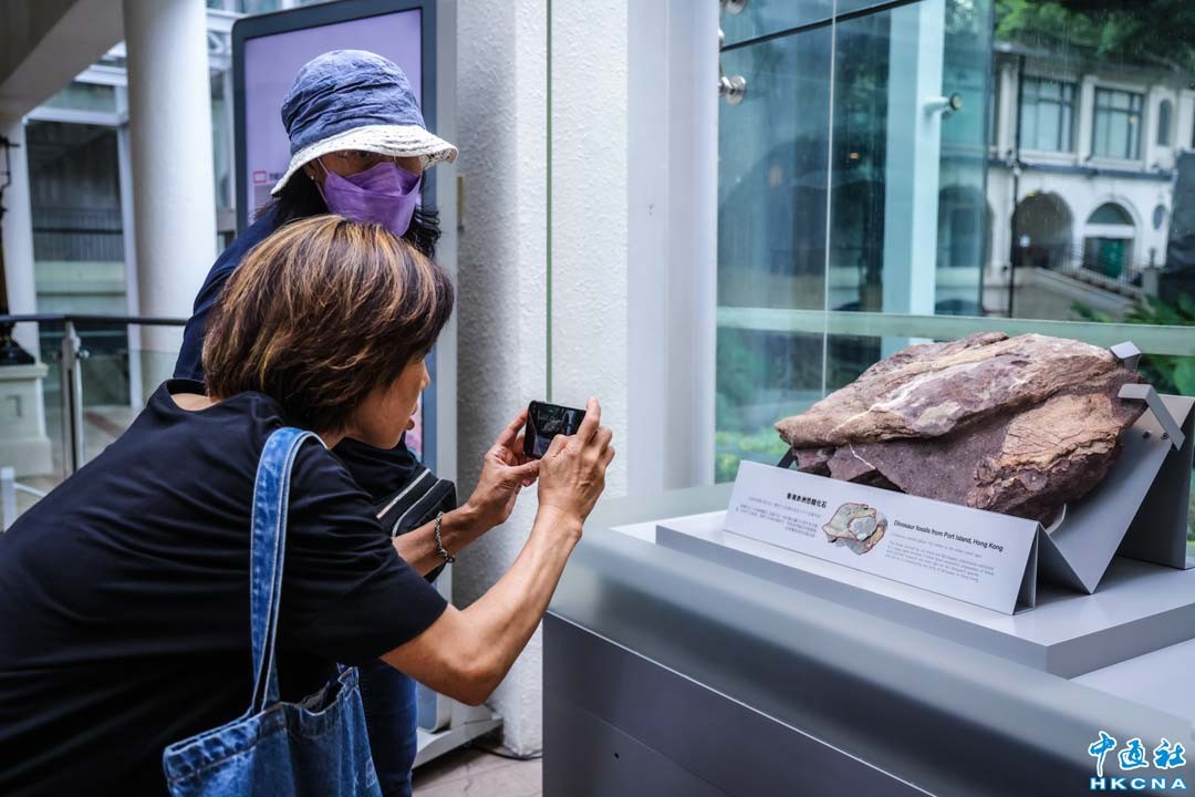 香港首次發現的恐龍化石,25日起在香港文物探知館向公眾展出。該恐龍化石是在香港東北部的大鵬灣孤島赤洲發現,屬於世界地質公園範圍內。日前特區政府召開記者會公佈此項信息後,引起市民極大興趣。目前赤洲已經封閉,嚴禁公眾登島。(香港中通社記者 曹文毓攝)