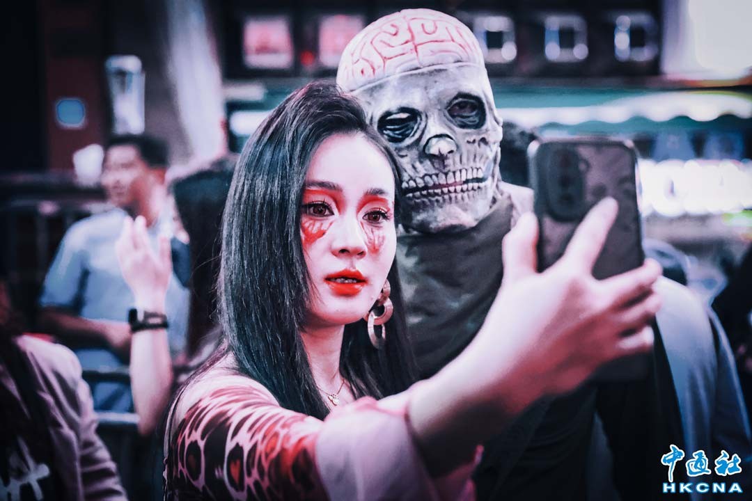 10月31日是萬聖節,香港蘭桂坊入夜後人山人海,大批市民及旅客身穿萬聖節裝扮狂歡,警方預料今日有約2.5萬人到蘭桂坊慶祝。(香港中通社記者 謝光磊攝)