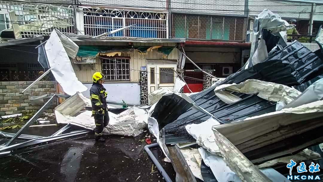 10月31日,七級颱風“康芮"從台東登陸,帶來強勁風雨,台灣多處地方傳出災情。圖為花蓮新城鄉路段有路燈被強風吹倒,康樂村鐵皮屋更被掀翻。 香港中通社圖片