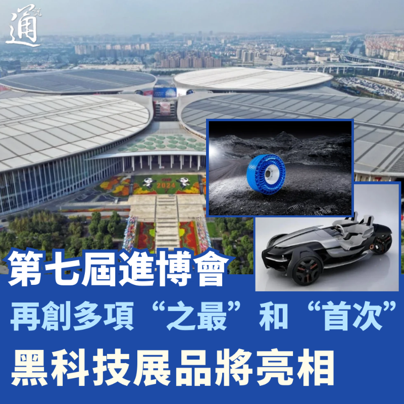 (香港新聞網製圖) 多項“之最”與“首次” 根據公開信息,本屆進博會企業展繼續保持36萬多平方米的超大規模,共有129個國家和地區的3496家展商參加,國別(地區)數和企業數均超過上屆。 參展的世界500強和行業龍頭企業達297家,數量達到歷史新高,186家企業和機構成為七屆“全勤生”。 會期將展示400多項代表性新產品、新技術、新服務,組織39個政府交易團和4個行業交易團、共計780個分團到會採購,為歷屆最多。 人文交流活動展示面積超過3.2萬平方米,亦是歷屆之最。 一系列數據見證本屆進博會“歷屆之最”,多個“首次”亦早有“劇透”。 據中國國際進口博覽局副局長吳政平透露,在技術裝備展區,本屆進博會首次設立新材料專區、升級人工智能體驗區;創新孵化專區首次聚焦數字經濟、綠色低碳、生命科學、製造技術四大賽道,展覽面積和項目數量均超過往屆。 低碳進博、科技進博是今年的突出特點。據央視新聞報道,本屆進博會首次通過本地綠證交易,即採購上海本地發電企業的綠色電力證書10000張,相當於1000萬千瓦時綠色電力,實現辦展期間的綠色用電。 此外,本屆進博會將首次舉辦大學創業世界盃全球總決賽等科技創新主題活動以及“全球化與青年發展:共用美好未來”虹橋分論壇。 眾多“黑科技”展品將亮相 作為連結全球貿易的紐帶,本屆進博會繼續匯聚“老朋友”和“新面孔”,將展示400多項代表性新產品、新技術、新服務,尤其是一批代表新質生產力發展方向的前沿展品將首發首展。 兩周前,本屆進博會首票進境展品——雅馬哈發動機株式會社的“人機合一”電動三輪概念車TRICERA飛抵上海,將在進博會上“中國首發”。該車前臉造型平直,採用不少空氣動力學組件,空氣通過前部進氣口經前艙蓋內部向上匯出,可以給車內乘員提供風阻保護;巨大的空氣導流槽和長行程懸架的設計,使它在行駛過程中能夠更好地適應各種路況;定風翼則有效增加了車輛的下壓力,進一步提升行駛穩定性。