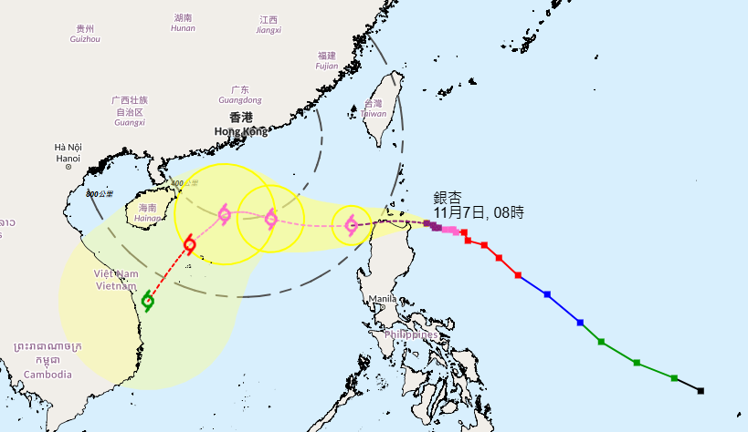 香港新聞網11月7日電 強颱風“銀杏”於6日深夜增強為超強颱風。香港天文台7日表示,料“銀杏”在當日晚上及8日清晨進入香港東南800公里警戒範圍,並採取偏西方向移動,橫過南海北部。