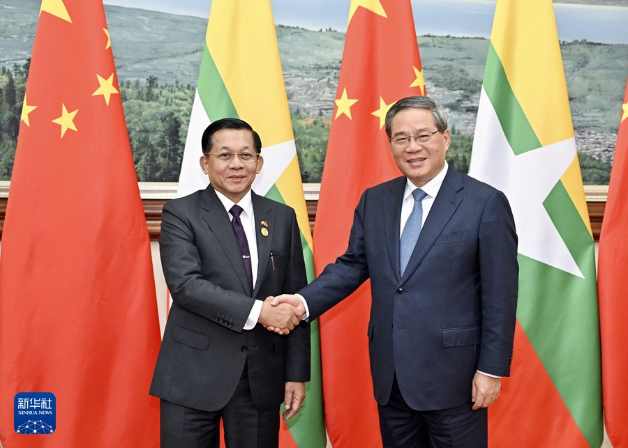 11月6日下午,中國國務院總理李強(右)在昆明會見來華出席大湄公河次區域經濟合作第八次領導人會議的緬甸領導人敏昂萊。新華社記者 殷博古 攝 據北京官媒7日消息,李強表示,中方支持緬方推進政治和解與轉型進程,願同緬方在高質量共建“一帶一路”框架下,穩步推進中緬經濟走廊建設。雙方要加強教育、文化、旅遊等領域合作和地方交往,打牢兩國友好的民意基礎,共同打擊網賭電詐等跨境犯罪活動,維護好兩國民眾切身利益。希望緬方切實保障中方在緬人員、機構和項目安全。中方願同緬方加強在多邊領域的團結協作,同廣大發展中國家一道努力,堅決維護好共同利益。 敏昂萊表示,緬中是親如兄弟的傳統友好鄰邦,兩國自建交以來,始終遵循和平共處五項原則精神,雙邊關係取得長足發展。緬方衷心感謝中方為緬甸經濟社會發展和應對自然災害提供的寶貴援助,感謝中方為緬甸和平和解和緬北和平穩定發揮的積極作用,將全力確保在緬中方人員、機構和項目安全。