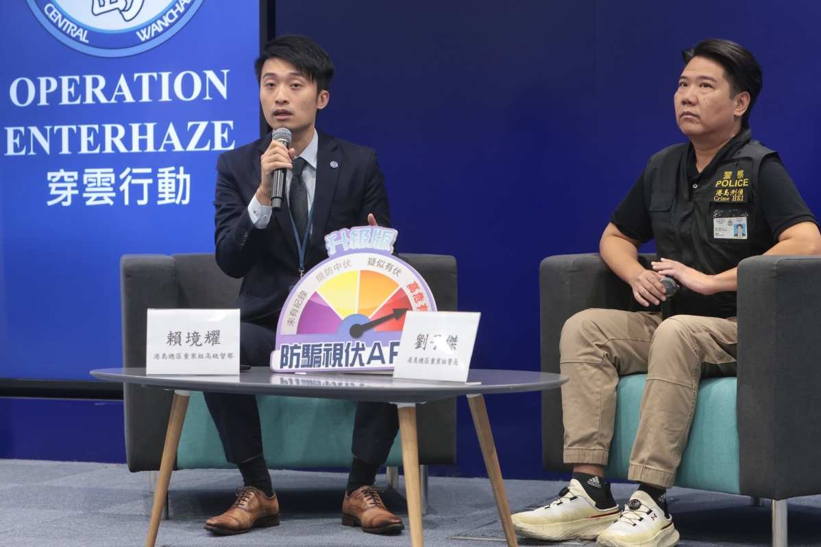 港島總區重案組高級督察賴境耀(左)及港島總區重案組警長劉子傑講述案件調查經過