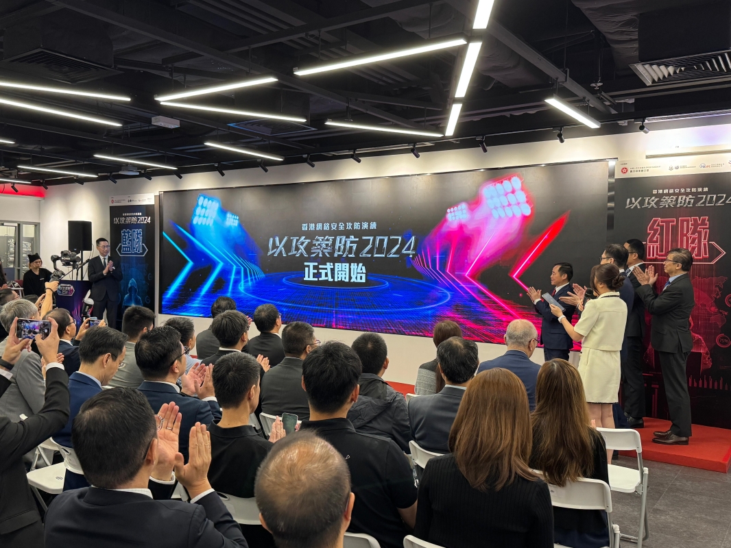 香港新聞網11月15日電 (梁嘉軒)為進一步加強香港特區政府各部門與公共機構抵禦網絡攻擊的能力,11月15日,政府數字辦牽頭舉辦“香港網絡安全攻防演練—以攻築防2024”活動,通過由各政府部門及公共機構抵禦來自網絡安全專家與業界所發出的“攻擊”,從而提升各政府部門及公共機構的網絡安全水平。 網絡安全最大漏洞在人 活動於今日上午正式展開,由網絡安全專家與業界組成的紅隊集中在香港資訊科技學院對各政府部門及公共機構的網絡系統展開攻擊,而作為藍隊的防守方則在自身的工作環境中進行防禦。演練開始後,在會場上的大屏幕會實時傳遞“戰況”,其中會以飛向香港地圖的紅色“火球”代表攻擊方的進攻,而動畫則會顯示藍色的防護罩進行這防護。