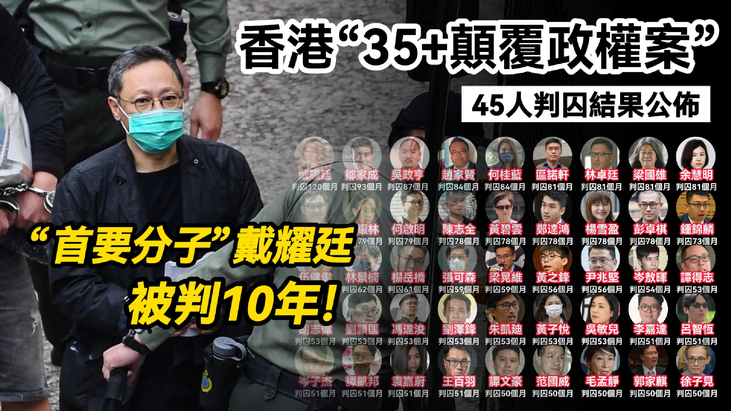 香港新聞網11月19日電 47人組織及參與“ 35+”計劃,被控串謀顛覆國家政權罪,其中31人認罪,14人經審訊後被裁定罪成,2人原審裁定罪名不成立,案件今日由3名國安法指定法官判刑。