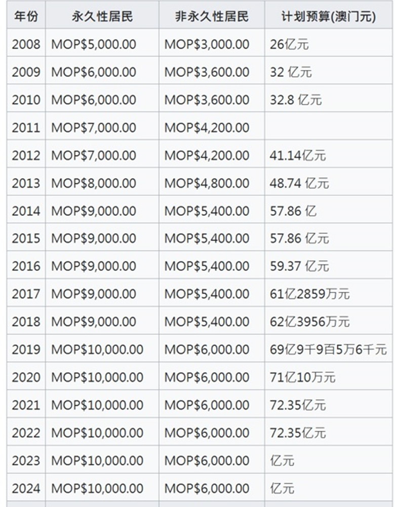 澳門過往17年派錢數據。澳門特區政府官方網站資料 【編輯:豐悅】