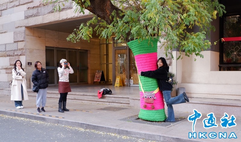 北京見聞:京城大樹穿毛衣 民眾打卡興致高香港中通社北京11月24日電 (香港中通社特約記者 莊恭百)“小雪”節氣剛過,北京街頭的樹已開啟過冬模式,率先“穿”起可愛毛衣,變身新晉“網紅”,吸引不少民眾打卡。 周五下午3點多,北京金寶街附近的紅星胡同裡人頭攢動。不到50米的窄胡同裡,5棵條紋相間、顔色鮮艶的網紅毛衣樹被遊客團團包圍。 比心、牽手、挽胳膊、抱樹……毛衣樹下上演各種“姿勢”大集合。有的毛衣愛好者精心穿搭而來,和毛衣樹逐棵合影。現場還有熱心人指導如何擺pose(姿勢)。 記者發現,這些毛衣樹身上的毛衣有向日葵、蝴蝶結、愛心等圖案,不僅材質、織法、配色各異,裝飾造型也五花八門。有的樹手捧愛心,有的雙手叉腰,還有的背起大眼仔斜挎包,憨態呆萌,就連樹杈也被“織”上了鳥窩,裡面還放置了彩色小鳥擺件。 “每一件毛衣都很有特色,如同一件藝術品,為冬季增添了一絲溫暖和多巴胺(網絡文化中指讓人開心的事物)甜蜜。”市民糖糖專程過來,就是為親眼目睹毛衣樹的可愛。 “樹其實只有幾棵,但胡同風景不錯,打卡結束可以在附近逛逛,是Citywalk的又一去處。”攝影愛好者範女士說,北京的胡同有煙火氣,窄巷子還能讓節奏慢下來,這是周末放鬆最喜歡的地方之一。 據了解,冬天給樹“穿”毛衣能為樹木保暖。這些毛衣樹本月初就已穿上毛衣,會一直保留到春節。“最近每天都有很多人排隊,我們也會提示大家拍照注意安全。”安保人員說。