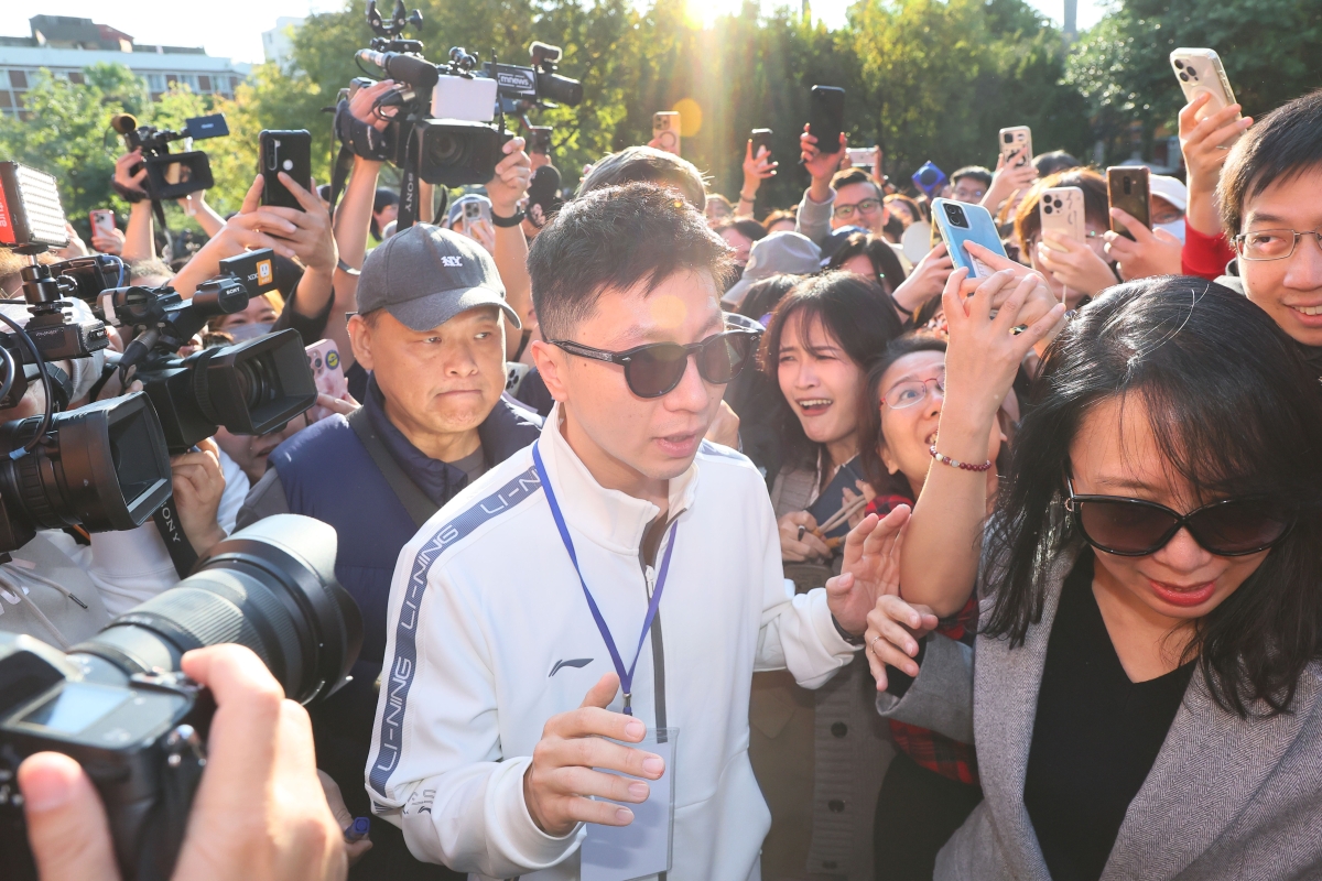 香港新聞網11月28日電 應馬英九基金會邀請,由大陸7所高校共40名師生組成的訪問團,於27日中午抵達台灣桃園機場,展開9天8夜的參訪活動,奧運冠軍馬龍和楊倩也在訪問團中,備受矚目。之後的參訪行程中,馬龍更是被年輕學子夾道歡迎,成了台灣這兩天最火的“拍照打卡點”。 一到台灣,訪問團便在機場受到台灣各界的熱烈歡迎。當馬龍出現在機場時,現場發出一片歡呼聲,球迷和媒體記者爭相拍照。現場有球迷高喊 “馬龍、馬龍”。還有球迷手持標語和球拍,在機場早早等候。 馬英九基金會執行長蕭旭岑透露,剛抵台不久,馬龍就喝了一杯珍珠奶茶,也吃了台灣有名的香菇肉臊麵。自己還囑咐馬龍,未來幾天有很多機會品嘗,所以還是要“節制”點。 台媒報道,有不少民眾提前在參訪校園外守候,還有網友在“小紅書”上組成馬龍追星群組,分享他在台9天8夜的行程。首場行程在台北中山女中,馬龍一出現就受到熱烈歡迎,同學們紛紛舉起手機拍照錄影,還有不少同學上前請馬龍簽名,現場猶如粉絲見面會般熱鬧。