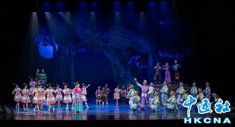 彩調劇《劉三姐》劇照。 香港中通社圖片 近日,彩調劇《劉三姐》複排提升工作入選中國文化和旅遊部《重點傳統(經典)劇目複排計劃名錄》。該劇首演於1969年,取材於“壯族歌仙”劉三姐的傳說故事,創造了在海內外演出3000多場的盛況,并被中國各地以及日本、美國等國外數十個文藝院團移植排演。 然而熟悉該劇的“鐵粉”則從一曲《多謝了》中細心地發現,2024版彩調劇《劉三姐》仿佛變了,又仿佛沒有變。 “從‘多謝四方眾鄉親,我今沒有好茶飯,只有山歌敬親人’,到‘多謝四方眾鄉親,我今已有好茶飯,更有山歌敬親人’,再到如今的‘多謝幸福領路人,我今已有好茶飯,更有山歌敬親人’,這是我們順應時代變化進行的改變。”廣西戲劇院院長龍倩介紹,這次複排從舞美、道具、服飾以及劇情構造上均有提升,使得舞台畫面更加豐富多彩,場面更加宏大。