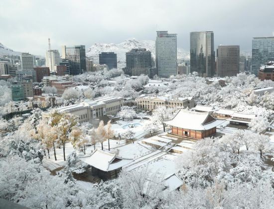 這是2024年11月27日拍攝的韓國首都首爾市中心的雪景。新華社資料圖片 截至當地時間28日早上8時,京畿道南部地區和首爾市南部多處的積雪,已經高過成年人的膝蓋,其中京畿道龍仁市積雪達到47.5厘米,首爾氣象觀測站就錄到28.6厘米積雪,創下1907年近代氣象觀測以來的第三高紀錄。 韓聯社報道,自27日以來,京畿道至少5人因降雪死亡,其中4人被倒塌的構築物壓死,1人因交通意外喪生。江原道一條高速公路發生53車連環相撞事故,11人受傷。 這次大雪也嚴重擾亂交通,首爾仁川機場大約140班航班取消,另據飛機追蹤網站Flightradar24顯示,28日有31%的航班延誤,16%的航班取消。另外,70多條渡輪航線停航。(完) 【編輯:林曉惠】