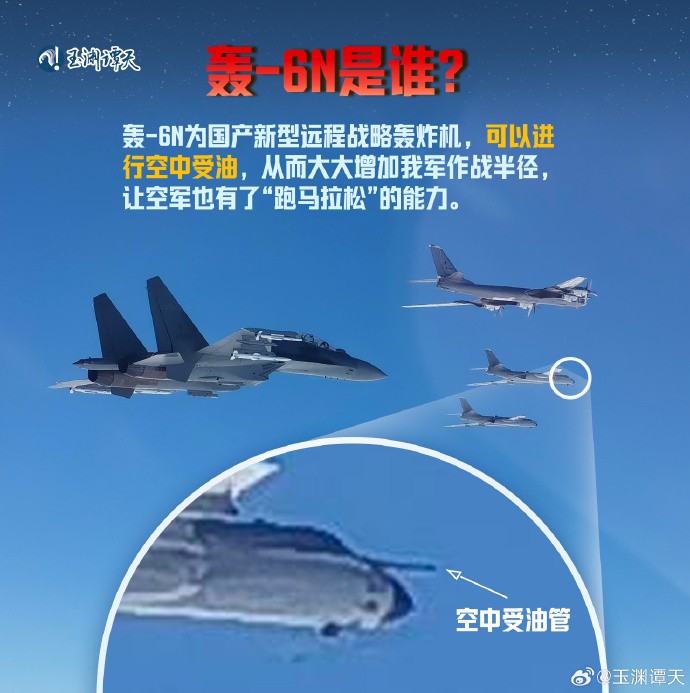 解放軍轟-6N技術特點。央視新聞“玉淵潭天”製圖 此外,官方發佈的照片顯示,轟-6N首次出現在巡航編隊中。據中國軍事專家介紹,解放軍轟-6N航程更遠,特別是通過空中加油,可以極大拓展編隊巡航的威懾力和打擊範圍。此外,轟-6N在一些機載武器和設備等方面也有改進,作戰效能是目前服役的最先進轟炸機,同時這也表明相關解放軍部隊在接裝以及通過嚴格的訓練之後,已形成作戰能力。(完) 【編輯:豐悅】