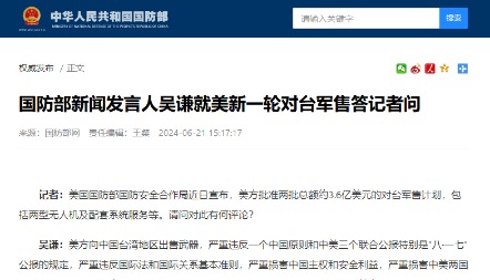 香港新聞網12月1日電 11月30日美國國防部發佈消息稱,美國務院已批准總額3.85億美元的對台軍售。有記者對此提問,中國外交部回應表示,美國向中國台灣地區出售武器,嚴重違反一個中國原則和中美三個聯合公報特別是“八·一七”公報規定,嚴重侵犯中國主權和安全利益,嚴重違反國際法,向“台獨”分裂勢力發出嚴重錯誤信號,破壞中美關係,危害台海和平穩定,同美方領導人“不支持台獨”表態背道而馳。中方強烈不滿、堅決反對,已向美方提出嚴正交涉。中方敦促美方立即停止武裝台灣,停止縱容支持“台獨”勢力“以武謀獨”。中方將采取有力措施堅決反制,堅定捍衛國家主權、安全和領土完整。