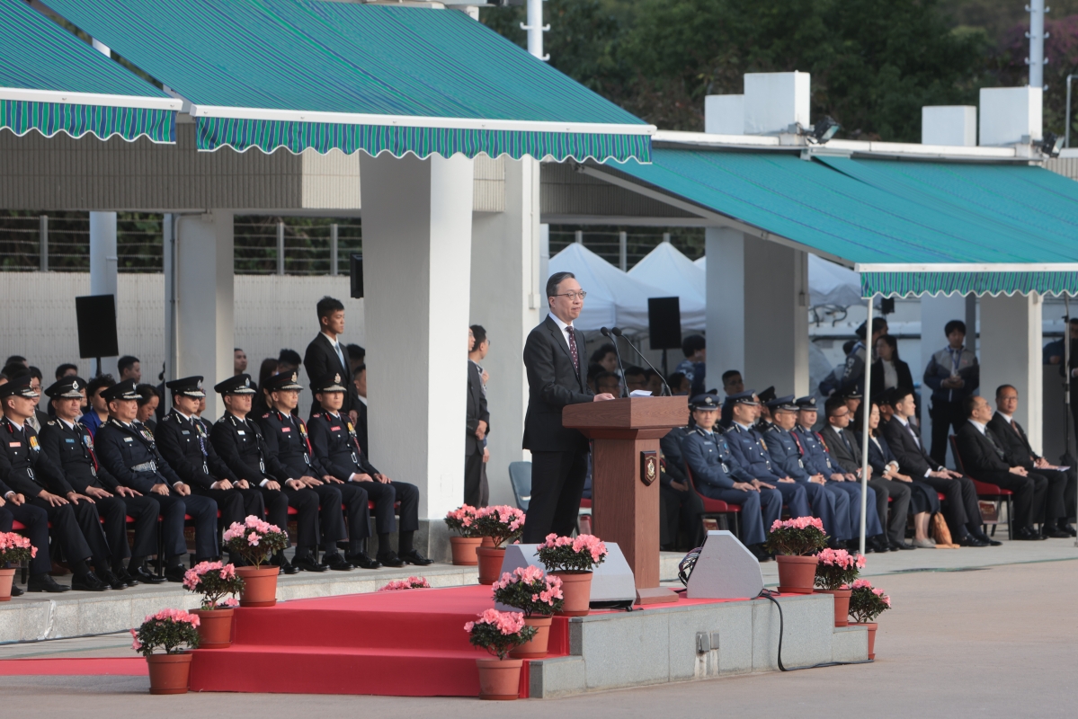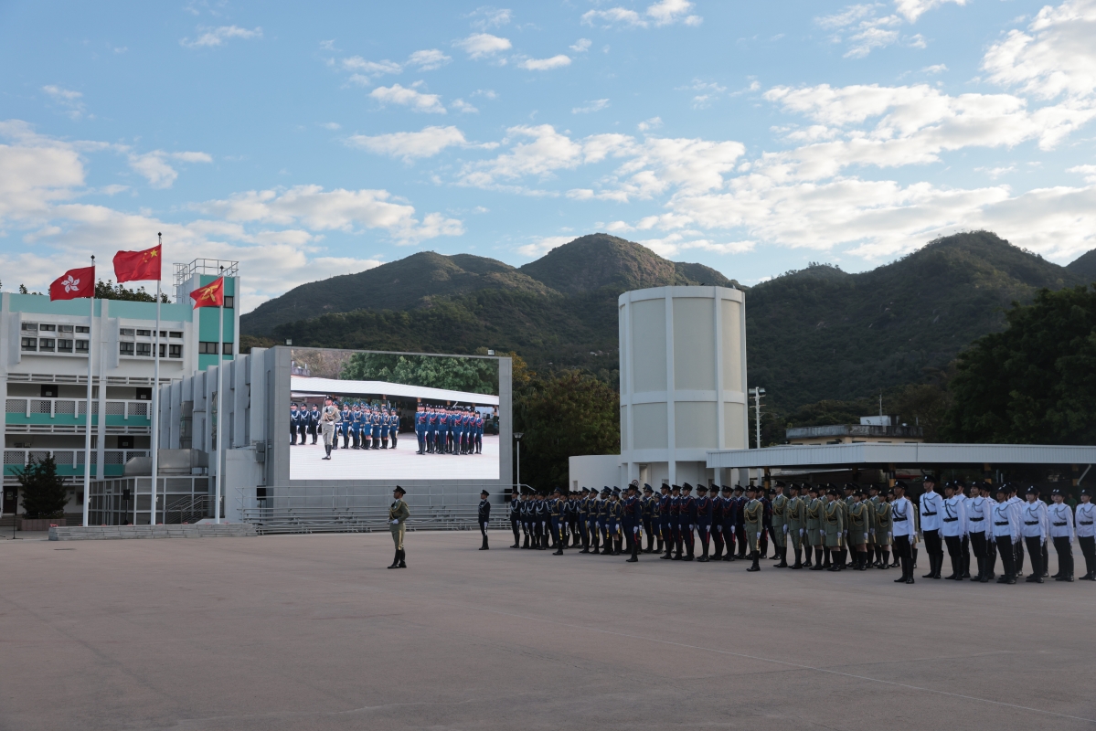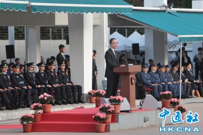 12月4日上午,香港特區政府保安局帶領轄下紀律部隊在香港海關學院舉行國家憲法日升旗儀式,律政司司長林定國為升旗儀式主禮。(香港中通社記者 謝光磊 攝)