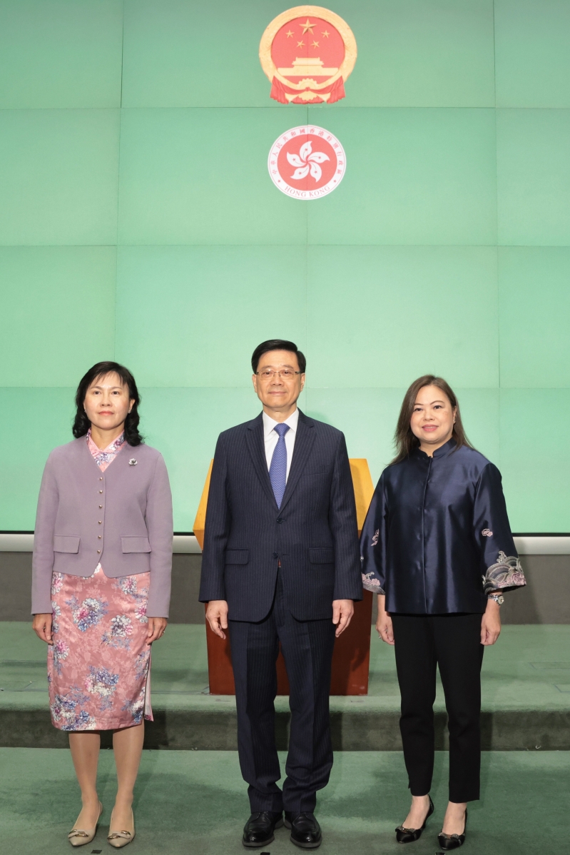 香港新聞網12月5日電(記者 徐嘉儀)香港特區行政長官李家超5日召開記者會,與特區政府運輸及物流局局長陳美寶及文化體育及旅游局局長羅淑佩會見傳媒。 當天,國務院依照基本法有關規定,根據香港特區行政長官李家超的提名和建議,決定任命陳美寶為運輸及物流局局長、羅淑佩為文化體育及旅游局局長,免去林世雄的運輸及物流局局長、楊潤雄的文化體育及旅游局局長職務。