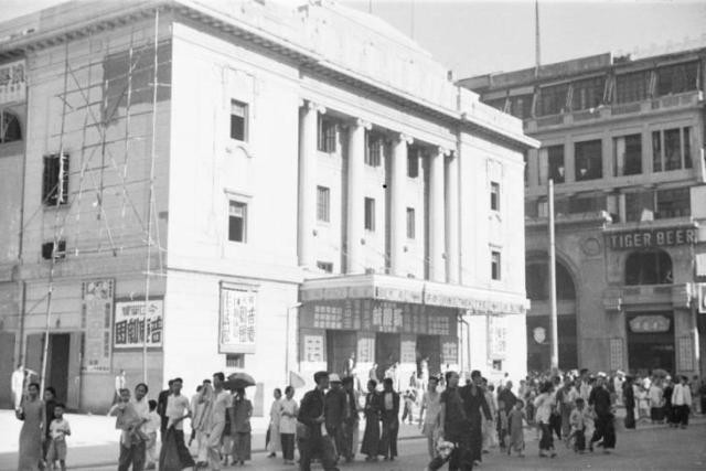 普慶戲院,攝於1940年代初。(圖源:University of Wisconsin-Milwaukee Libraries) 1890年,香港島上環迎來了第一家戲院——普慶戲院,自此粵劇在香港日漸流行。值得一提的是,早期粵劇的舞台幾乎是男性的天下,直到1933年法律修訂,男女才得以同台演出。
