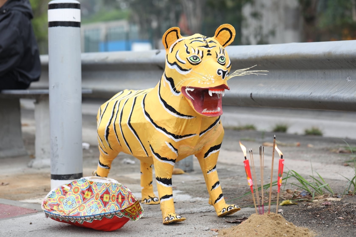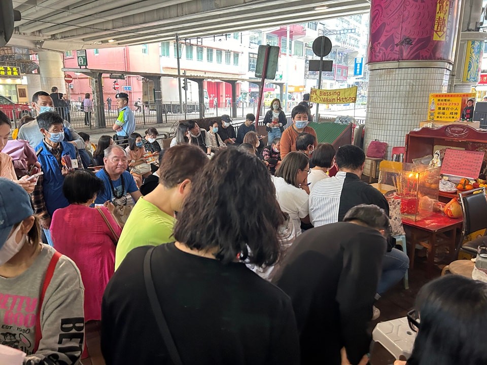 每逢“驚蟄”,銅鑼灣鵝頸橋下,都有不少市民前來“打小人”。(香港中通社記者 黃璇攝)