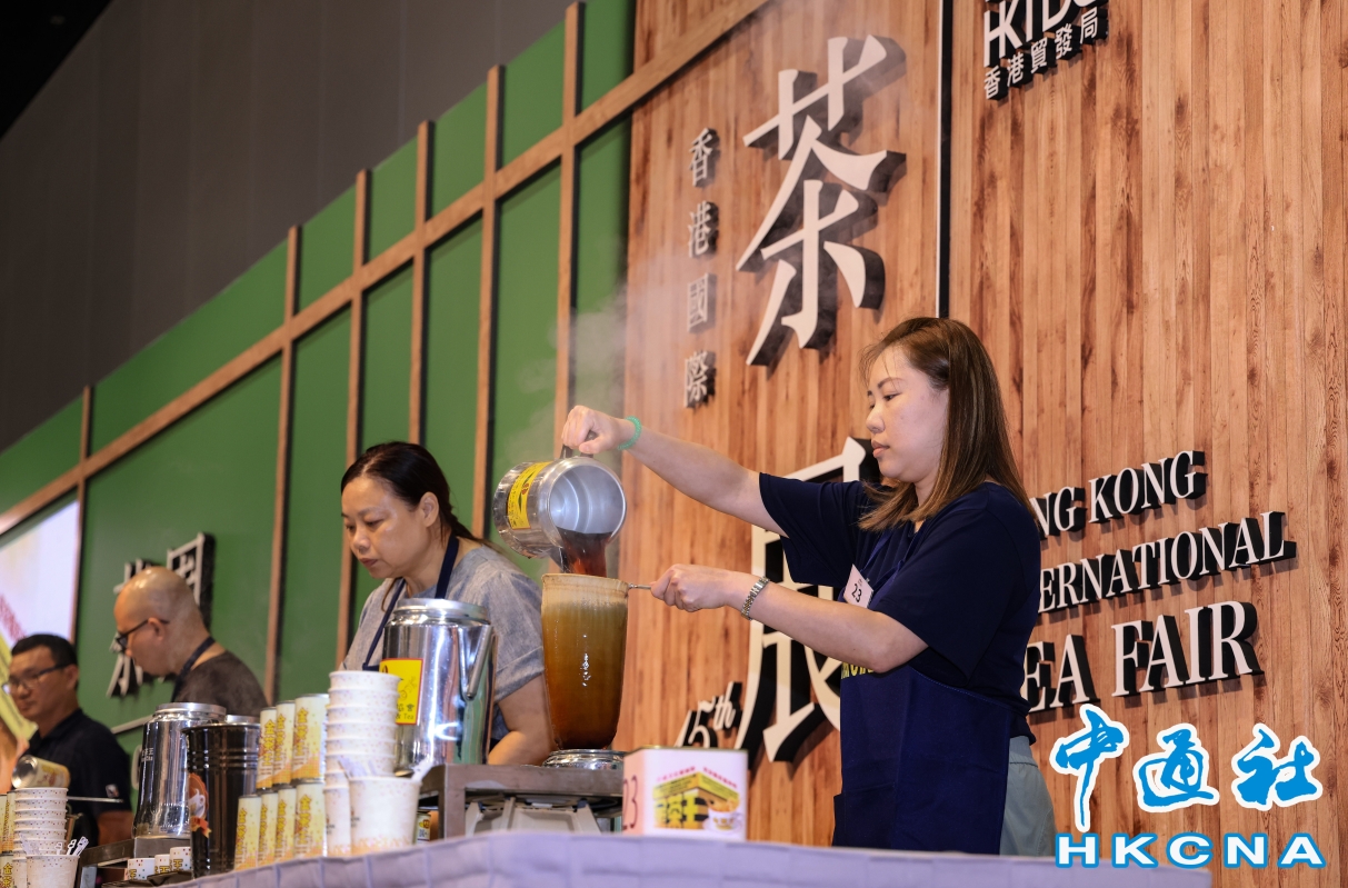 港式奶茶製作技藝。(香港中通社圖片)