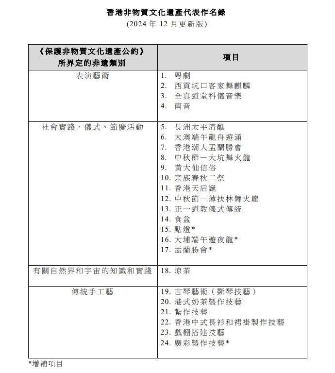 香港非物質文化遺產代表作名錄。(資料來源:非物質文化遺產辦事處) 【延伸閱讀】