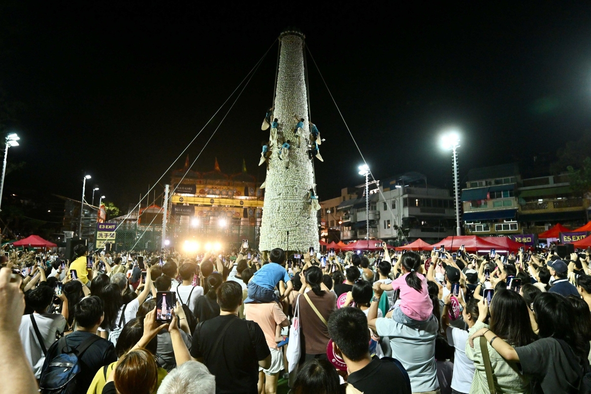 長洲搶包山是太平清醮的重頭戲。(香港中通社記者 黃璇攝)