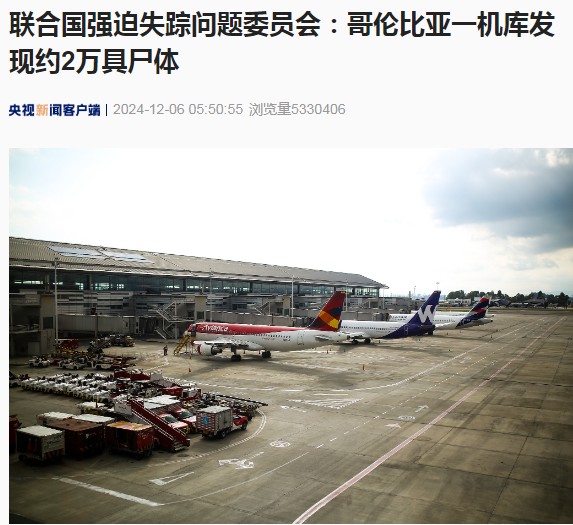 (央視新聞截圖) 委員會表示,哥倫比亞過去存在著與強迫招募未成年人、人口販運、土地衝突有關的失蹤、流離失所和移民失蹤的案例,造成大量人口失蹤後無從尋覓。這些屍體應該是無處安放的不明身份者遺體,被保存在機庫裡。 委員會與哥倫比亞政府展開合作調查,相關報告將於明年3月17日至4月4日在日內瓦舉行的會議上由委員會全體會議討論。 埃爾多拉多機場對於在其機庫中發現大量屍體表示震驚,強調對此事並不知情,正在等待官方說明。 2016年底,總統桑托斯同“哥倫比亞革命武裝力量”簽署和平協議,終結長達52年的內戰。然而長期和平並沒有到來,各類武裝分支拒絕參與和平進程,繼續襲擊政府機構以及基礎設施,在當地通過建學校、醫院,搭橋修路,甚至實施獨立的司法制度等方式以鞏固對根據地的控制。這使得哥倫比亞成為世界上受犯罪和暴力影響最嚴重的國家之一。(完) 【編輯:劉春】