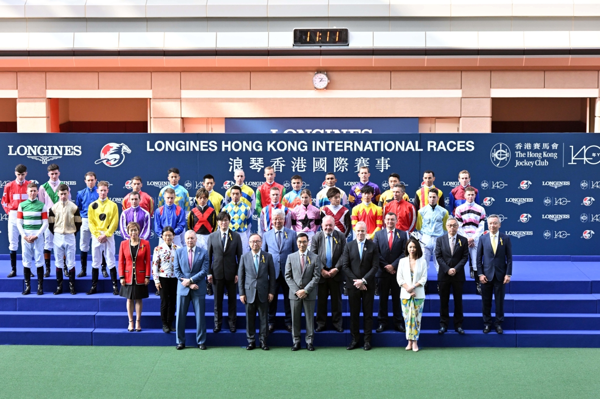 香港新聞網12月8日電 享譽全球的“浪琴香港國際賽事2024”於12月8日在沙田馬場圓滿舉行。這一年度盛事共吸引了超過8萬名觀眾入場,見證中國香港隊摘下三項一級賽桂冠。 作為全球馬壇一年一度的盛事之一,浪琴香港國際賽事不僅是賽馬愛好者的盛宴,更是向全球展示賽馬最高水平的重要平台之一。當天的活動由亞洲巨星Rain鄭智薰以勁歌熱舞揭開序幕。之後,28名來自中國香港及海外的騎師在開幕儀式上亮相。