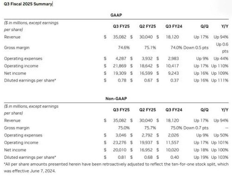 英偉達H100型號GPU芯片。圖自網絡 在絕對的技術領先之下,英偉達爆發出了恐怖的利潤率。今年第三季度,英偉達發佈財報,營收達350億美元,同比增長94%,不僅超過了市場預期的332億美元,還創下了歷史新高。它的淨利潤竟然高達193億美元,淨利率達到誇張的55%。 2024年前三季度,英偉達的總營收已經突破817億美元,2024年全年有望突破1200億美元。其中,最大的營收貢獻點,就在於AI芯片。要知道,這還是在限製出售給中國市場的情況下。若是全面解禁中國市場,英偉達的AI芯片業務會更加誇張,因為中國市場的AI芯片購買力,絲毫不弱於美國。