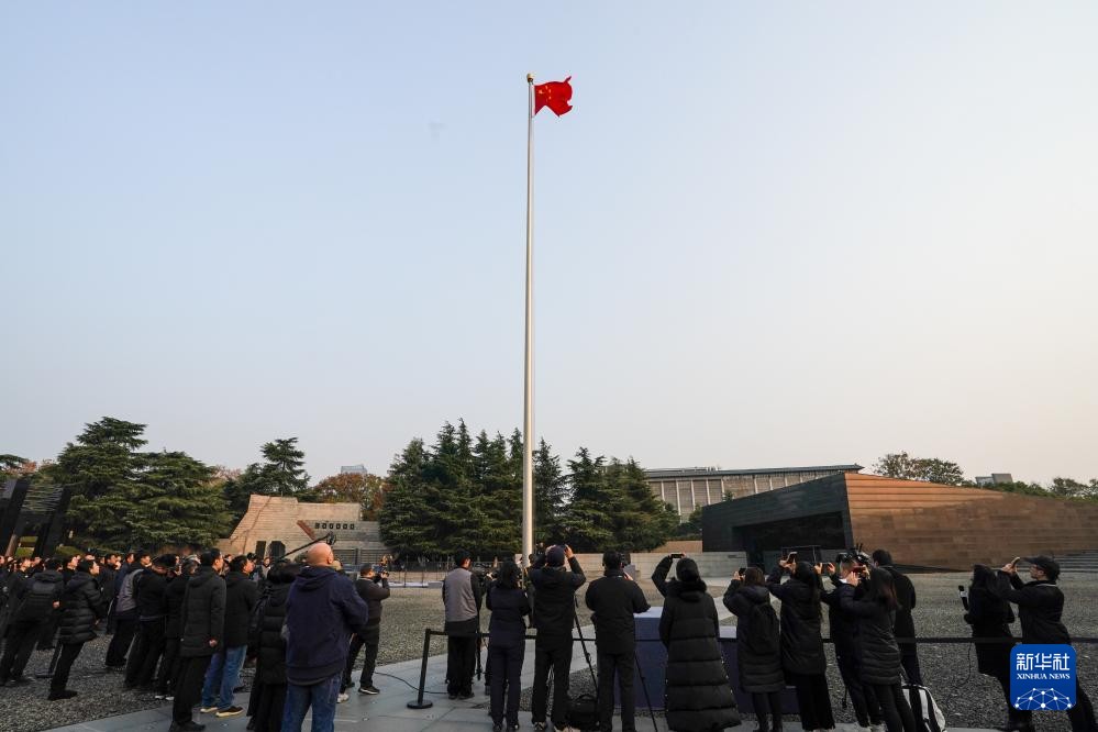 香港新聞網12月13日電 12月13日是南京大屠殺死難者國家公祭日。上午8時,侵華日軍南京大屠殺遇難同胞紀念館集會廣場上舉行升國旗、下半旗儀式。
