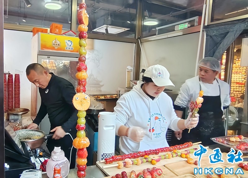 2024年12月14日,北京前門鮮魚口胡同一家冰糖葫蘆店窗口,店員正在制作“1米大串”冰糖葫蘆。 香港中通社圖片 “1米長的冰糖葫蘆得預定,大約要等20分鐘。”14日,北京前門大栅欄鮮魚口胡同一家冰糖葫蘆售賣窗口,店員趙先生邊趕制“1米大串”冰糖葫蘆,邊回應正在排隊點單的顧客,一串剛掛好糖稀不久、被置於窗口顯眼處的“1米大串”已賣“脫銷”。 “最近很多人都來買,賣得好的話一天能售出十幾串。”店員趙先生介紹,店里現做的純山楂版“1米大串”每串49元(人民幣,下同),有33顆山楂果;水果版的每串59元,搭配山楂、青提、砂糖桔等應季水果。“我們賣得并不算貴,其他地賣還有七八十的。”不到一個小時里,該店已售出兩單水果版“1米大串”。 只見店員先將洗淨的水果串在1米長、鉛筆般粗的竹簽上,後將一鍋白砂糖加水熬至焦糖色時,一次將糖汁均勻澆裹於串好的水果表面,反復兩遍,待糖稀冷卻後,點綴糖豆作的裝飾物,便可上架待售。店員介紹,澆糖稀過程2分鐘左右即可完成,不過澆得串數多了,胳膊也有點吃不消。 一位母親剛買完1米長水果糖葫蘆,就為自家小男孩拍照。只見小男孩雙手托著竹簽兩端,才勉強與“1米大串”同框,隨即吸引了來往行人的目光。拍照完畢,店員將這串“大家夥”分段拆下,分裝於兩個包裝盒才成功打包。 “走出5米有10個人問!”遊客小莫也表示,在前門購買完“1米大串”也成為街上的“顯眼包”(容易受到關注的人)。 站著吃、舉著吃、互喂吃……“1米大串”糖葫蘆造型看著過癮,如何下嘴讓人好奇。有商家繪制“吃法分解圖”,為顧客花式享受冬日甜蜜打開思路。糖葫蘆愛好者曉曉特來解饞,并表示,“酸甜可口,太有創意了,一次吃到爽,實現了糖葫蘆自由”。 “情緒價值妥妥到位,也是冬天拍照神器,很適合給朋友也帶一串。”前來打卡的範女士稱,買到1米長的糖葫蘆很開心,吃不完可以帶回家。不過,另有顧客表示“吃起來費勁”“吃著吃著(糖衣)就化了”“1米大串并非必須品,需謹慎下單”。 記者線上線下走訪多家商戶,發現“1米大串”在京城“熱度不均”。內地在線餐飲平台美團上有十幾家店鋪在售1米長冰糖葫蘆,使用優惠券後價格在23.8元至118元不等,部分品類需提前2小時至4小時電話預定,也有1米長糖葫蘆半年售量超500單。 海澱區探五哩商業街區的一位冰糖葫蘆店主向記者介紹,目前店里1米長的糖葫蘆已下架,原因是受歡迎度不高,還不够原料成本。“很多人買也就拍照打卡。和正常糖葫蘆比,(1米長的糖葫蘆)口味并沒有很獨特,反而容易裹糖汁不均勻。”該店店主說。 也有商家推出新品“迷你草垛”糖葫蘆。這種糖葫蘆,每串有兩三顆水果,如山楂糯米、草莓葡萄等,往往“結伴”出售。顧客現場自選5串糖葫蘆,由店員串在迷你草垛上并調整造型,這種自由搭配的快樂正受不少顧客青睞。 “每年都會火一樣,每樣都是火一陣。下一個會火的不知會輪到哪個。”前門一家冰糖葫蘆店店員小周說。(完) 【編輯:紀東】