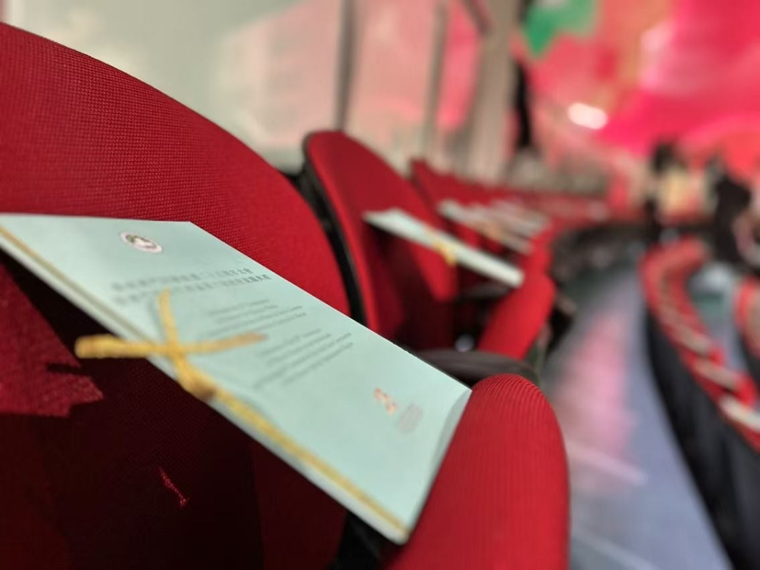 香港中通社圖片 座位上的典禮手冊頗受歡迎,淡綠色的封面配了金色彩帶蝴蝶結,嘉賓都拿起來合影。中外媒體提前了兩小時到場設置機器,測試直播信號,籌備工作就緒後,都紛紛拍起這份綠色小花絮。隨後工作人員也向記者派發今日專屬的澳門手信。(完) 【編輯:譚暢】