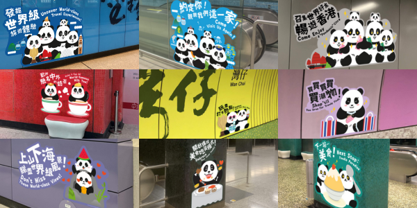 (圖源:港鐵) 港鐵推出的3列大熊貓主題列車,2列行駛於南港島線、1列行駛於機場快線。車廂內貼滿大熊貓裝飾,牠們造型不一,有的是鯊魚造型,有的在吃竹葉,也有具港鐵特色的車長造型。 港鐵指,這3架列車由12月19日起行駛至明年2月中旬,乘客可透過港鐵網站查看大熊貓主題列車的班次。高鐵大熊貓主題列車也將於明年1月啟航,乘客由香港西九龍站乘搭高鐵前往深圳或廣州,有機會與主題列車相遇。 此外,港鐵將海洋公園站改造為大熊貓主題車站,香港6隻大熊貓的可愛形象於車站不同角落呈現,包括客務中心、大堂、月台、樓梯和牆壁等;港鐵金鐘站候車大堂的圓柱設有LED屏慕,亦會播放6隻大熊貓的3D影像,逗趣可愛。同時,金鐘、灣仔、銅鑼灣、中環、海洋公園、東涌、深水埗、香港、尖沙咀及尖東等10個高人流車站會設“打卡位”,每個車站的大熊貓造型均不同,代表各自地區特色。 港鐵南港島線沿線各站、羅湖站、落馬洲站、機場快綫沿線車站,以及高鐵香港西九龍站的站務員,也會在制服上掛上大熊貓裝飾。
