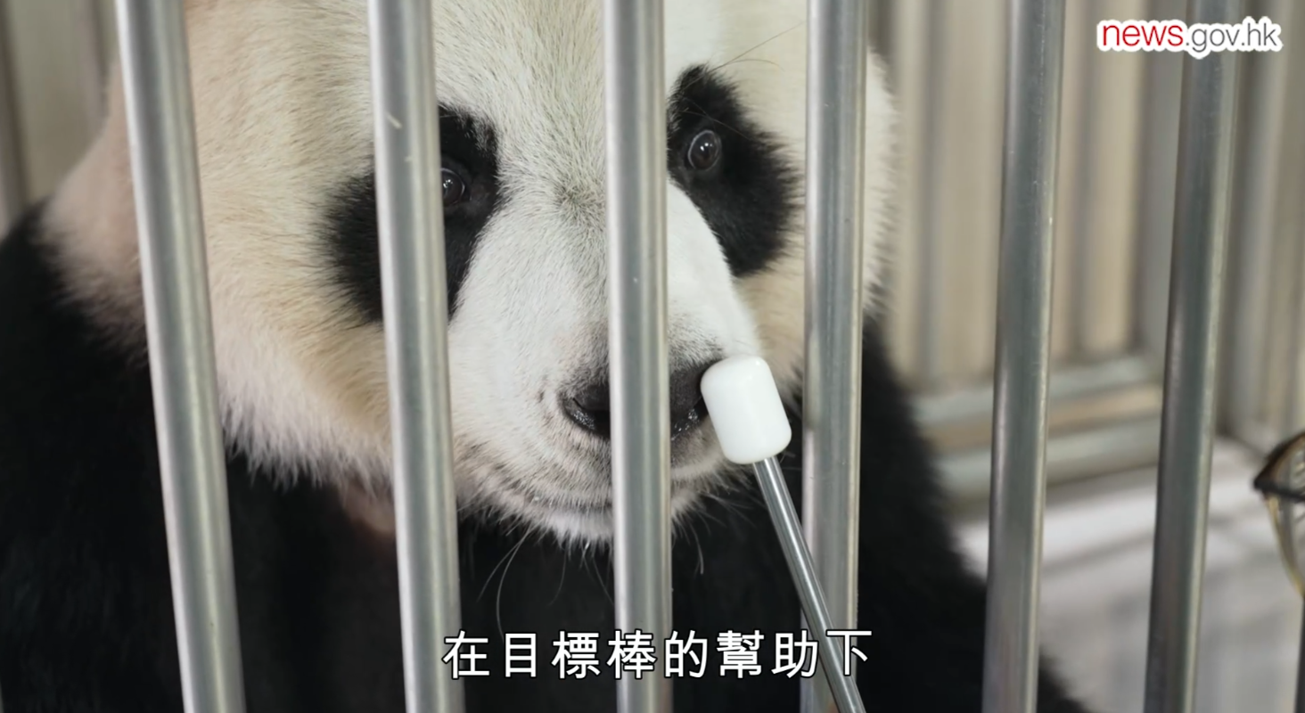 護理員正訓練“安安”,讓牠逐漸習慣訓練籠等醫療環境。(圖源:政府新聞網)
