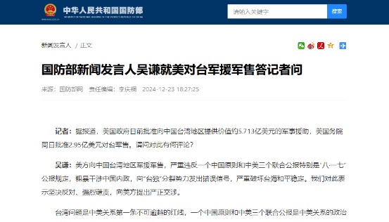 美國總統拜登 香港中通社資料圖片 聲明未提及有關這項軍事援助計劃的詳細信息。這是拜登第三次動用“總統撥款權”對台提供軍援,且是三個月內的第二次。 美國今年9月宣布向台灣提供約5.67億美元的軍事援助,創下當時美國對台軍援的最高紀錄。 不過美國國防部監察機構發表的一份報告指出,台灣去年12月收到的美國依“總統撥款權”提供的軍事援助物資無法使用,導致台當局還需花費一筆費用處理。報告揭露,台灣收到的270萬發子彈為1983年生產,已經過期,超過3500組防彈板和背心受潮發霉。“美國在台協會”人員稱,這讓台當局感覺美方像在“清理不需要的庫存”。 對於美國向台灣提供軍事援助,中國外交部發言人此前表示,美方嚴重違反一個中國原則和中美三個聯合公報特別是“八·一七”公報。實際上是為賴清德和民進黨當局頑固推行“台獨”、挑釁一個中國原則撐腰打氣。這再次證明,當前台海和平穩定面臨的最大威脅、對台海現狀的最大破壞,就是“台獨”勢力分裂活動和以美國為首的外部勢力對其的縱容支持。必須指出,“台獨”是死路一條,美國執意“以武助獨”必將引火燒身,自食惡果。(完) 【編輯:李冉】