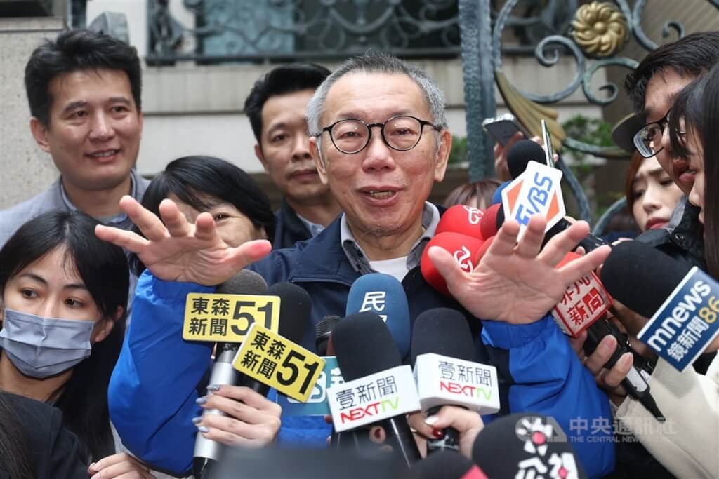 12月27日下午,台灣民眾黨主席柯文哲於家門口接受媒體採訪。台灣“中央社”圖 據台灣《聯合報》27日報道,26日移交台北地方法院審理的被告包括柯文哲、威京集團主席沈慶京、前台北市副市長彭振聲和台北市議員應曉薇等5人。經過6個多小時的辯論,台北地方法院最終裁定5名被告全部交錢保釋。 綜合中時新聞網等台媒報道,在親友籌到交保金後,柯文哲27日中午1時左右在多名民眾黨黨員的陪同下走出法院。上百名“小草”(柯文哲的支持者)聚集在法院外。隨後,柯文哲乘車返回家中。