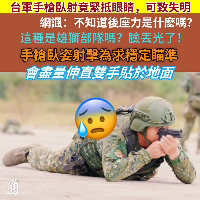 台軍手槍臥射竟緊抵眼睛 網友諷刺:世界怎麼跟得上台灣?香港新聞網12月30日電 台灣網絡近日流傳一張台軍人持手槍進行臥射,卻將手槍的擊錘抵在自己眼睛上瞄準的照片。台陸軍第六軍團其後證實圖片“是真的”,引發輿論嘩然…… 近日,台灣網絡各軍武社團均流傳一張“離奇”照片,一名台軍士兵持手槍進行臥射時,將手槍的擊錘貼在眼睛上。這意味著,一旦扣下手槍扳機,擊錘向後可能讓其眼睛瞬間失明。