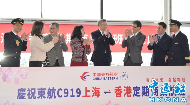 1月1日,香港運輸及物流局局長陳美寶在香港國際機場出席慶祝東航C919上海往返香港定期商業航班儀式。圖為陳美寶(左四)、民航處處長廖志勇(左三)、香港機場管理局署理行政總裁張李佳蕙(左二)與中國東方航空安全總監趙清(右四)、香港中國企業協會航空業委員會理事長王傑(右三)和其他嘉賓在儀式上合照。 香港中通社圖片 當日早上8點21分,該航班搭載157名旅客,從上海虹橋機場起飛,開啟從“東方明珠”上海到“東方之珠”香港的商業首航之旅。當天執飛的C919還以“新皮膚”亮相,身披“閃耀中國紅”特別塗裝開啟新年第一飛。 航班今早10時40分左右著陸香港國際機場,機場以水門禮歡迎。香港成為東航C919定期執飛商業航班的第9座城市。 有旅客下機後表示,終於坐上祖國的大飛機,心情非常激動;亦有旅客指出,上機前不久才得悉乘搭首航機,加上著陸後的水門禮,都令旅程充滿儀式感,體驗上會給它打滿分。能夠在新年開始,體驗這標誌性時刻,感自豪及高興。 據了解,東航還為C919滬港航線量身打造了“雲上食·滬港同心”主題餐食,以粵菜和上海菜為主。 香港飛機租賃和航空融資協會會長許漢忠表示,C919的組裝方式與波音、空中巴士相近,但機艙設計更寬闊,如一切正常,C919將於今年9月取得歐盟認證,相信有助走入國際市場。 中國民航局華東地區管理局局長萬向東表示,C919乘載著中國民航業宏偉夢想,展開香港上海商業航線有助積累寶貴經驗,令乘客得到更多樣化飛行體驗,祝願首航完滿成功,令C919成為中國民航亮麗名片。 C919是由中國商飛製造的一款幹線民航飛機。2023年5月28日,第一架國產大飛機C919成功實現商業首航。2023年12月16日,C919飛機從香港國際機場起飛,順利完成飛行演示,吸引市民和旅客駐足維港兩旁觀賞,共同見證C919首次於維港上空翱翔的歷史時刻。 據了解,國航、南航也已接收C919飛機,並投入商業運營。內地三大航空公司全部開啟C919商業運營,意味著C919的規模化運營邁入新階段。(完) 【編輯:紀東】