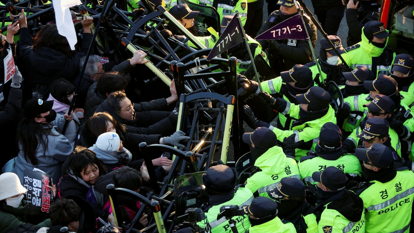 圖片來源於網絡 大批誓死保衛尹錫悅的支持者一早便聚集在總統府前,把總統府圍個水洩不通,這其中還混雜著多名前來“護駕”的國會議員。不過公調處人員很快突破了重重防線,8時02分許,公調處調查官進入總統官邸正門。他們即將面對的,是200多名軍人和總統警衛處職員組成的人牆。 據瞭解,執行逮捕令的調查官、警察刑警當天與總統官邸內軍警發生了強烈的對峙和肢體衝突。最後,經過長達5小時的對峙,下午13時30分,公調處宣佈暫停執行逮捕令。為這場沸沸揚揚的鬧劇按下暫停鍵。 回顧這一場鬧劇,事實上早已現端倪。 因太太金建希近年面臨受賄、操控市場、乾政等指控,尹錫悅在過去一年深受困擾。去年11月底,反對派否決執政黨的財政預算案,成為了壓倒尹錫悅的最後一根稻草,“朝小野大”的空前政治壓力迫使他12月3日晚走上戒嚴令這一步棋。結果戒嚴令戲劇性地在六小時後被撤回,此舉也被世界戲稱為“六小時政變”,此次事件也開啓了韓國政治的亂局。反對派乘勝追擊發起對總統尹錫悅的彈劾,隨後尹錫悅被理所當然地停職。 根據韓國憲法,尹錫悅宣佈戒嚴,這是法律賦予總統的獨有權力。逮捕總統,也是韓國法律賦予公調處公職人員的特權。有分析認為,尹錫悅的六小時戒嚴令結束,公調處的五小時逮捕未果,背後是韓國政治沒有達成多數共識的體現。