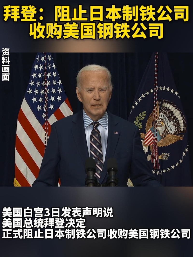 圖源:新華網 美國白宮3日發表聲明說,拜登正式阻止日鐵收購美鋼。拜登在聲明中說,日鐵收購美鋼將“使美國最大的鋼鐵生產商之一置於外國控制之下,給美國國家安全和關鍵供應鏈帶來風險”。 日本經濟產業大臣武藤容治對美國政府阻止收購案表示遺憾。他說,美國“以國家安全保障方面的擔憂”為由做出這樣的決定,令人難以理解。日本產業界擔憂聲音高漲,日本政府將嚴肅對待。 美鋼首席執行官戴維·伯里特2024年9月曾表示,如果收購交易失敗,美鋼可能關閉位於賓夕法尼亞州匹茲堡的總部和工廠,恐危及數千個工作崗位,還可能將總部遷出美國。 2023年12月,日鐵宣佈計劃以149億美元收購美鋼。主管外資審查的美國外國投資委員會表示,擔憂相關交易會導致美國鋼鐵產量下降,對“國家安全”構成威脅。日鐵和美鋼認為,美國外國投資委員會的所謂擔憂缺乏依據。(完) 【編輯:念方野】