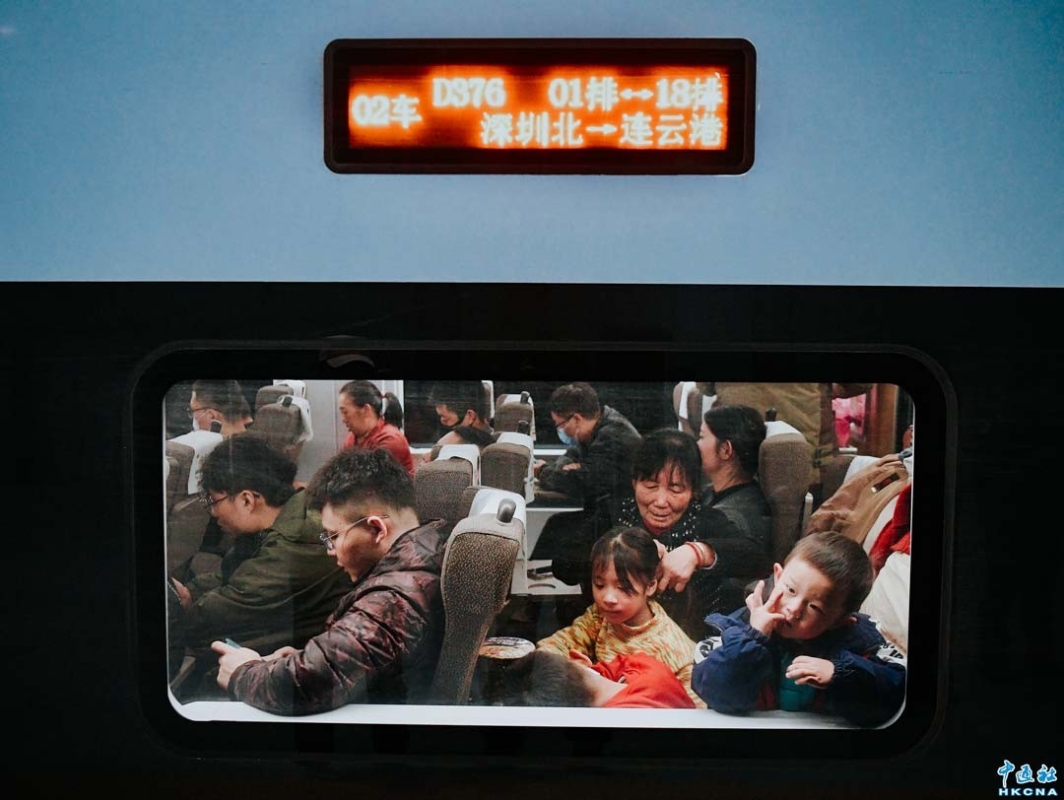 2024年1月26日早晨,由深圳北站開往連雲港的D376次深圳春運首趟列車開出。 香港中通社圖片 (聞子 攝)