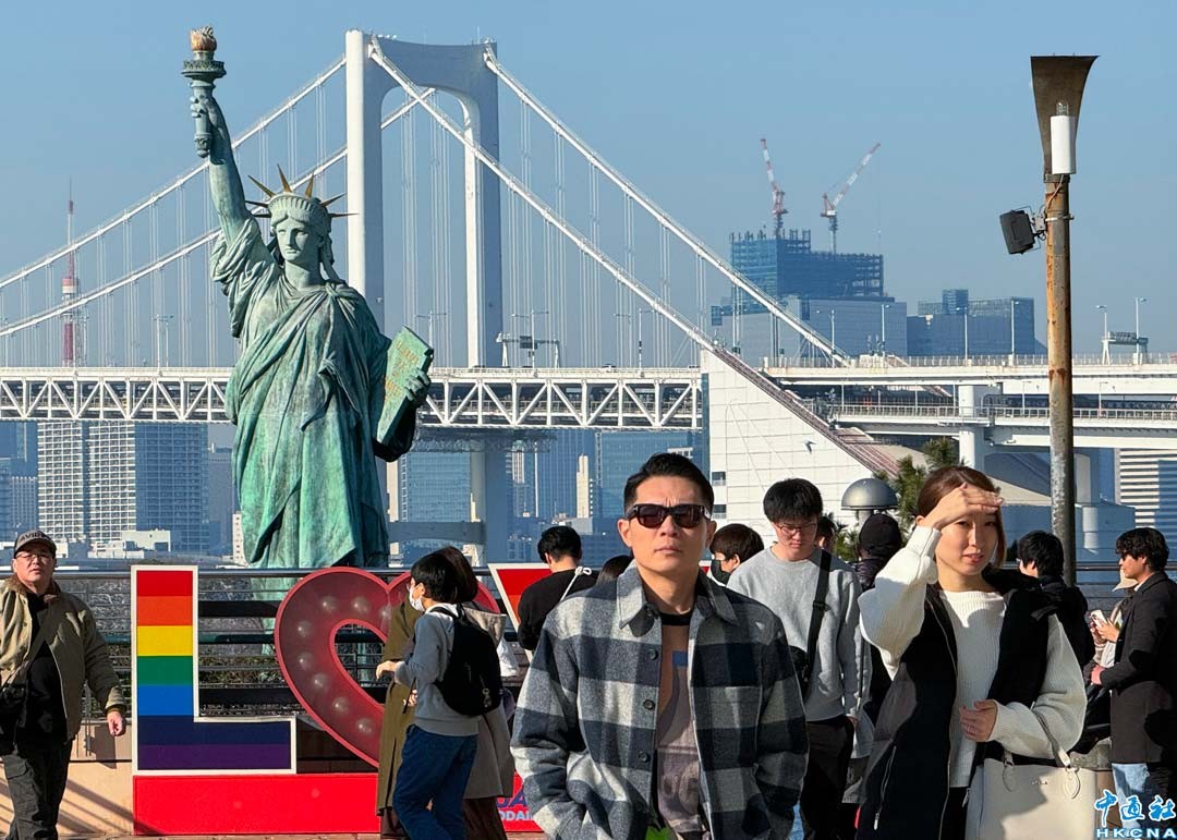 紐約的地標自由女神像世界聞名,但在日本東京也有一座複製品,座落在東京灣海濱,背景是東京地標“彩虹橋”,景色優美。東京自由女神像是為了紀念日本和法國之間的友好關係,於1998年興建並限期展覽,但因為大受歡迎,2000年決定繼續永久設置在原地。東京版的自由女神像連台基不到13米,比起總高度達93米的紐約自由女神像,是名符其實的迷你自由女神,但一樣深受世界各地遊客歡迎。 (香港中通社記者 徐文峰攝)
