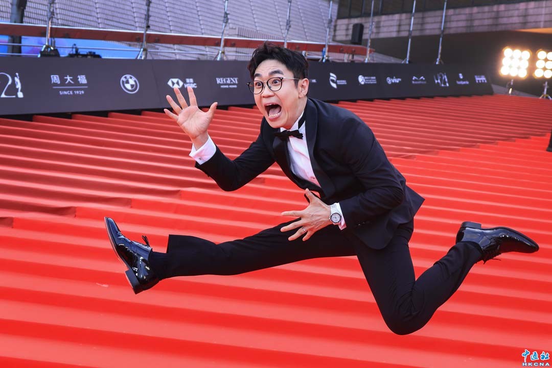 2024年4月14日,第42屆香港電影金像獎頒獎典禮在香港文化中心舉行。圖為演員大鵬亮相紅地毯。(香港中通社記者 許其皓攝)